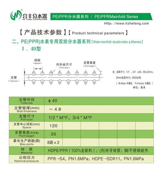 PE(PPR)水表專用雙排分水器系列IV、75型